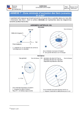 - L : longueur du câble à l’instant t - Zone minimale d’exclusion fixe pour tout le vol