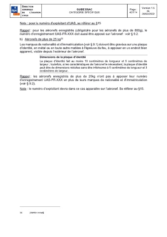 numéro d’enregistrement UAS-FR-XXX doit aussi être apposé sur l’aéronef : voir § 9.2.