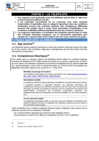 Les télépilotes dans la catégorie Spécifique et selon les scénarios nationaux doivent être âgés