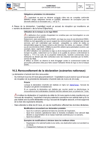 aéronefs obtenue si nécessaire etc.) : voir § 17.