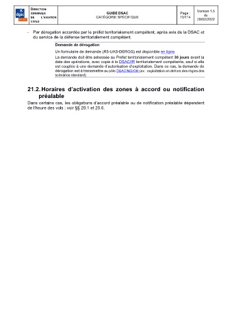 dérogation est à transmettre au pôle DSAC/NO/OH (ex : exploitation en dehors des règles des