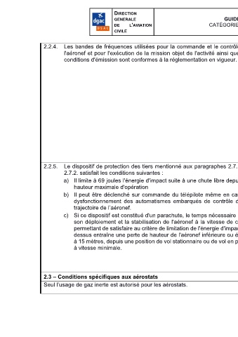 2.3 – Conditions spécifiques aux aérostats