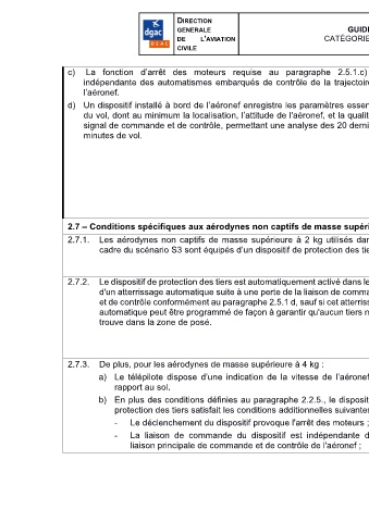 2.7 – Conditions spécifiques aux aérodynes non captifs de masse supérieure à 2 kg utilisés dans le cadre du scénario S3