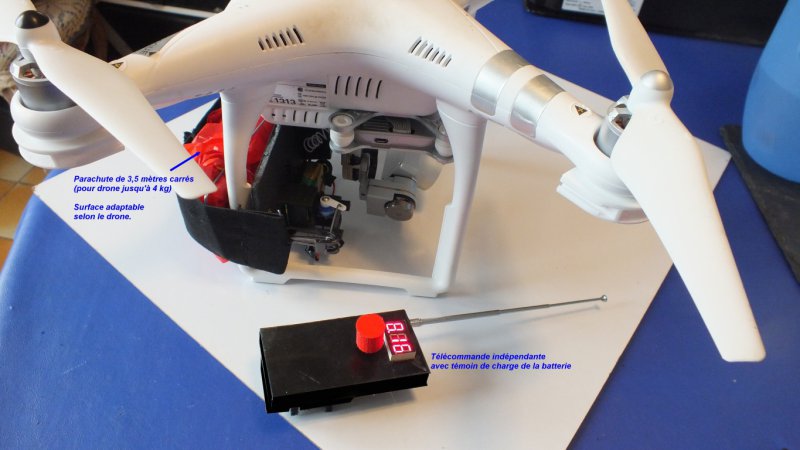 Le système d'éjection est compatible avec les parachutes pour drones de 1 à 4 kg.
